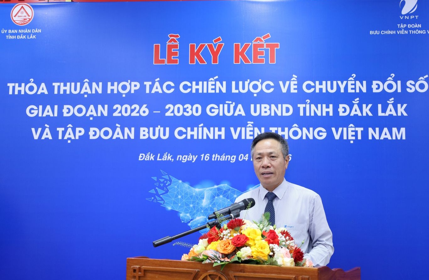 Phát biểu tại lễ ký kết, đồng chí Đỗ Hữu Huy, Ủy viên dự khuyết Trung ương Đảng, Phó Bí thư Tỉnh ủy, Chủ tịch UBND tỉnh khẳng định: Đây là sự kiện có ý nghĩa quan trọng, đánh dấu bước tiến mới trong hành trình hiện thực hóa mục tiêu xây dựng Đắk Lắk trở thành tỉnh phát triển, dựa trên nền tảng kinh tế số, xã hội số và chính quyền số. Việc ký kết hợp tác với Tập đoàn Bưu chính Viễn thông Việt Nam hôm nay thể hiện sự quyết tâm và tinh thần đồng hành của tỉnh với doanh nghiệp viễn thông - công nghệ số hàng đầu Việt Nam. Để thỏa thuận hợp tác đi vào thực chất, khả thi, Chủ tịch UBND tỉnh yêu cầu các sở, ngành, địa phương trong tỉnh phối hợp chặt chẽ, tạo điều kiện thuận lợi nhất để Tập đoàn Bưu chính Viễn thông Việt Nam triển khai các nội dung hợp tác được hiệu quả, đúng tiến độ.