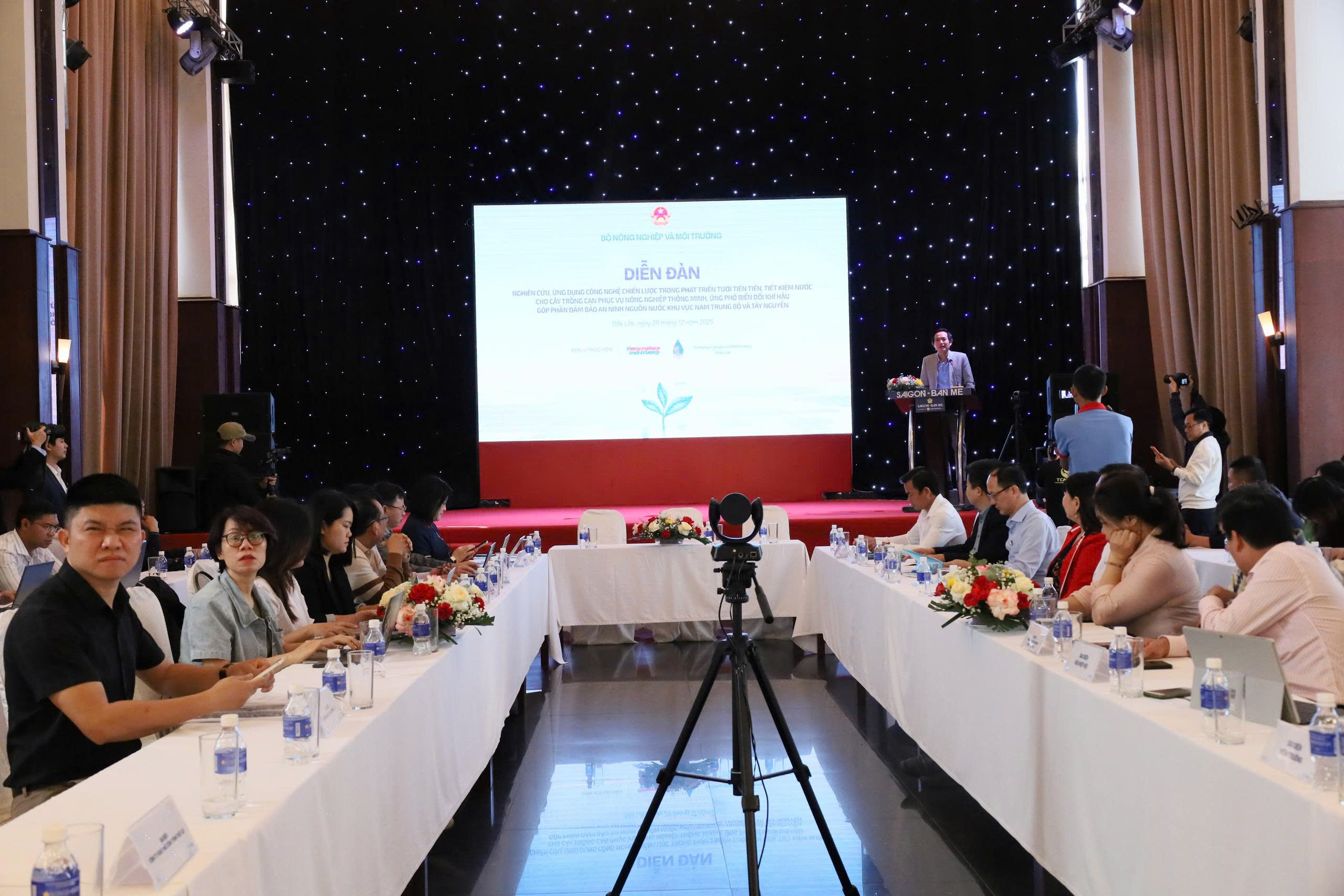 “Trong bối cảnh chuyển đổi sang nông nghiệp thông minh, nông nghiệp sinh thái, việc nghiên cứu, ứng dụng các công nghệ tưới tiên tiến, tiết kiệm nước cho cây trồng cạn không chỉ là giải pháp kỹ thuật, mà còn là giải pháp chiến lược, góp phần nâng cao năng suất, chất lượng nông sản, giảm chi phí sản xuất, bảo vệ tài nguyên nước và môi trường sinh thái”, ông Vũ Minh Việt nhấn mạnh. Diễn đàn hôm nay là dịp để các cơ quan quản lý, nhà khoa học, doanh nghiệp, địa phương và người sản xuất cùng trao đổi, chia sẻ kinh nghiệm, kết quả nghiên cứu, mô hình thực tiễn và các giải pháp công nghệ mới trong lĩnh vực tưới tiên tiến, tiết kiệm nước. Đồng thời, đây cũng là diễn đàn để đề xuất cơ chế, chính sách, định hướng đầu tư và hợp tác nhằm thúc đẩy ứng dụng rộng rãi các giải pháp hiệu quả, phù hợp với điều kiện đặc thù của Nam Trung bộ và Tây Nguyên.