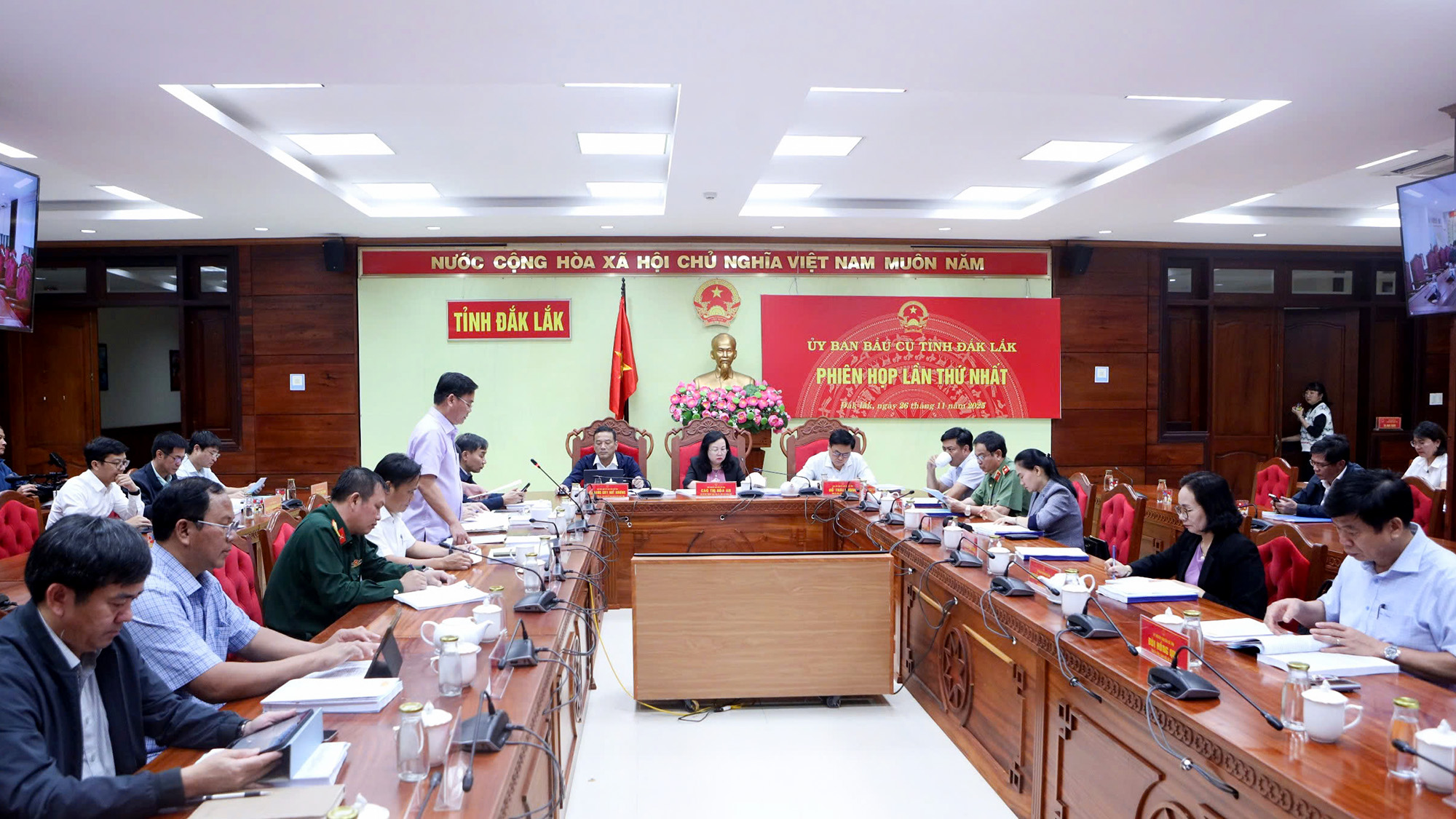 Tối 26/11, Ủy ban Bầu cử đại biểu Quốc hội khóa XVI và đại biểu HĐND tỉnh nhiệm kỳ 2026 – 2031 tổ chức Phiên họp lần thứ Nhất. Các đồng chí Cao Thị Hòa An – Phó Bí thư Thường trực Tỉnh ủy, Chủ tịch HĐND tỉnh; Y Giang Gry Niê Knơng – Phó Bí thư Tỉnh ủy, Chủ tịch Ủy ban MTTQ Việt Nam tỉnh; Đỗ Thái Phong – Phó Chủ tịch HĐND tỉnh cùng chủ trì Phiên họp. Đồng chí Đào Mỹ - Phó Chủ tịch UBND tỉnh chủ trì tại điểm cầu UBND tỉnh (cơ sở 2)