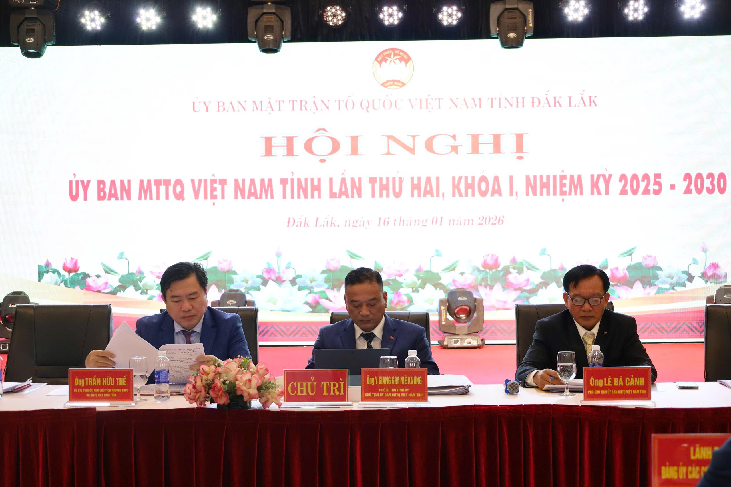 Sáng 16/1, Ủy ban Mặt trận Tổ quốc Việt Nam tỉnh Đắk Lắk tổ chức Hội nghị lần thứ 2, khóa I, nhiệm kỳ 2025 – 2030; tổng kết công tác Mặt trận và các tổ chức chính trị – xã hội năm 2025, triển khai nhiệm vụ năm 2026. Đồng chí Y Giang Gry Niê Knơng, Phó Bí thư Tỉnh ủy, Chủ tịch Ủy ban MTTQVN tỉnh chủ trì hội nghị.