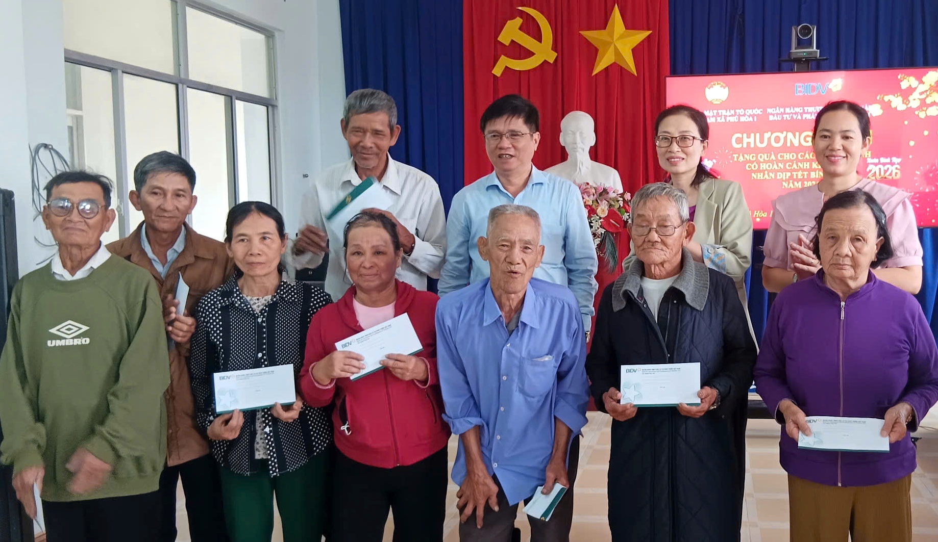 Tại chương trình, Ban Tổ chức đã trao tặng 200 suất quà Tết, trong đó xã Phú Hòa 1 100 suất và Phú Hòa 2 100 suất. Dịp này, thừa ủy nhiệm của UBND tỉnh, Chánh Văn phòng UBND tỉnh tặng quà chúc mừng năm mới cho lãnh đạo 02 xã; Ngân hàng Agribank trao tặng mỗi xã 45 triệu đồng để hỗ trợ công tác an sinh xã hội, giúp địa phương có thêm nguồn lực chăm lo cho các hộ gia đình khó khăn, bảo đảm mọi người dân đều được vui Xuân, đón Tết đầm ấm, trọn vẹn.