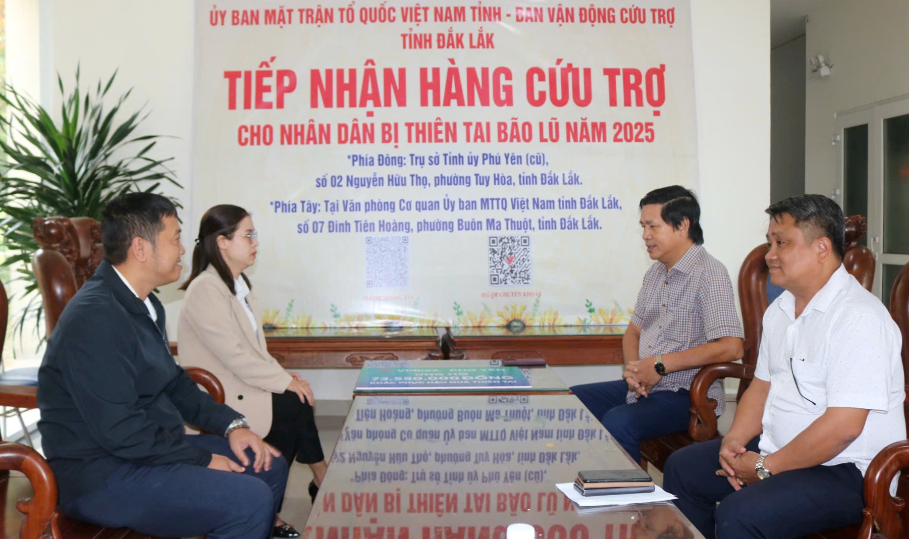 Sáng 28/11, tại trụ sở Tỉnh ủy (cơ sở 2), Phó Chủ tịch Ủy ban MTTQ Việt Nam tỉnh Phạm Văn Bảy tiếp và làm việc với đoàn công tác của VPBank Phú Yên đến thăm và trao quà hỗ trợ tỉnh Đắk Lắk khắc phục hậu quả thiên tai.