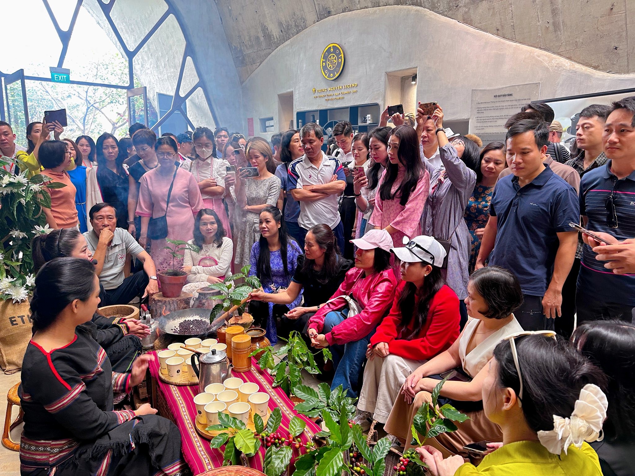 Du khách tham quan tìm hiểu quy trình chế biến cà phê tại Bảo tàng thế giới cà phê