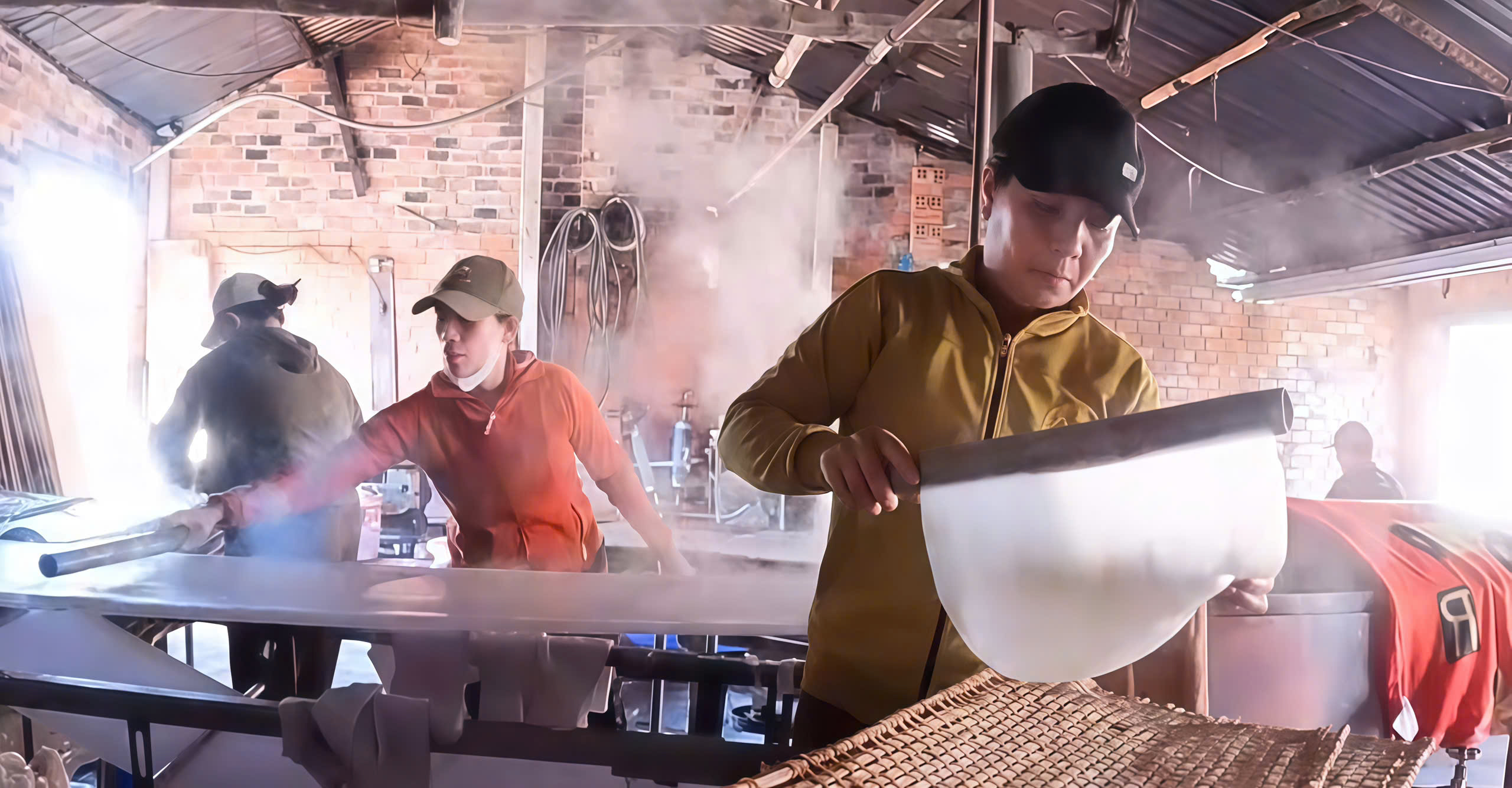 Đầu tư máy móc vào sản xuất bánh tráng góp phần chuyển đổi từ thủ công sang hiện đại.