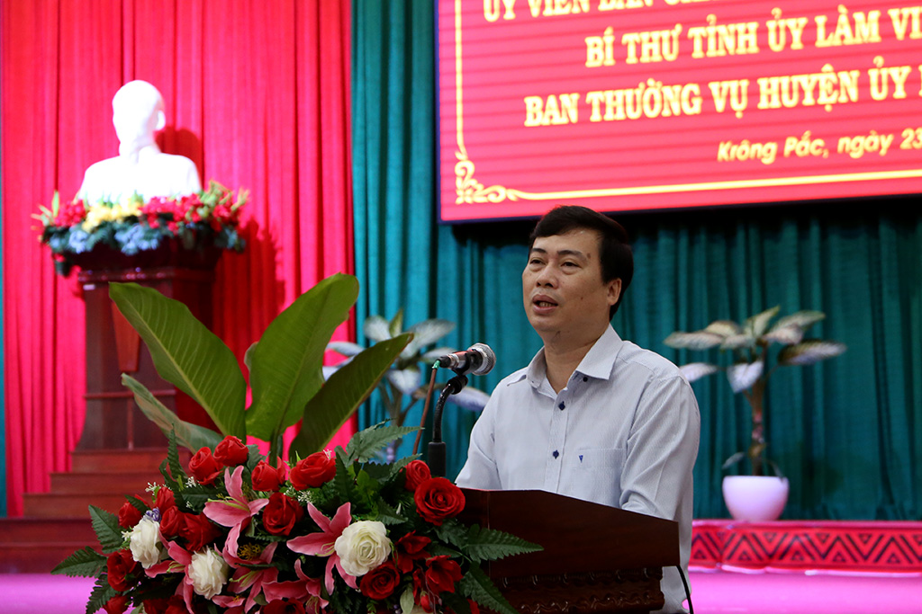 Về phương hướng nhiệm vụ trong thời gian tới, Bí thư Tỉnh uỷ yêu cầu Ban Thường vụ Huyện uỷ rà soát lại các chỉ tiêu nhiệm vụ, phát huy những chỉ tiêu thực hiện tốt, tập trung thực hiện các giải pháp đối với các chỉ tiêu đạt thấp; thực hiện tốt công tác thu - chi ngân sách, giảm những khoản chi không cần thiết, tập trung nguồn lực cho công tác phòng, chống dịch; quan tâm công tác giải ngân đầu tư công; tiếp tục lãnh đạo thực hiện “mục tiêu kép” vừa kiểm soát dịch bệnh, vừa phát triển kinh tế, chủ động xây dựng kế hoạch bảo vệ “vùng xanh” từ cấp huyện, cấp xã đến thôn, buôn; tập trung phát triển theo chiều sâu trên tất cả các lĩnh vực, tái cơ cấu ngành nông nghiệp gắn với chế biến, phát triển mô hình kinh tế hợp tác xã ...