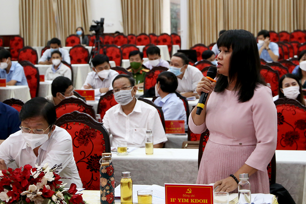Đồng chí H' Yim Kđoh, Phó Chủ tịch UBND tỉnh phát biểu tại buổi làm việc.