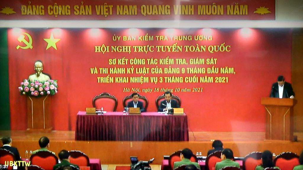Sáng 18/10, Ủy ban Kiểm tra (UBKT) Trung ương tổ chức Hội nghị trực tuyến toàn quốc sơ kết công tác kiểm tra, giám sát và thi hành kỷ luật Đảng 09 tháng và triển khai nhiệm vụ 3 tháng cuối năm 2021; tổ chức nghiên cứu, quán triệt, triển khai thực hiện Quy định 22-QĐ/TW, ngày 28-7-2021 của Ban Chấp hành Trung ương Đảng về công tác kiểm tra, giám sát và kỷ luật của Đảng.