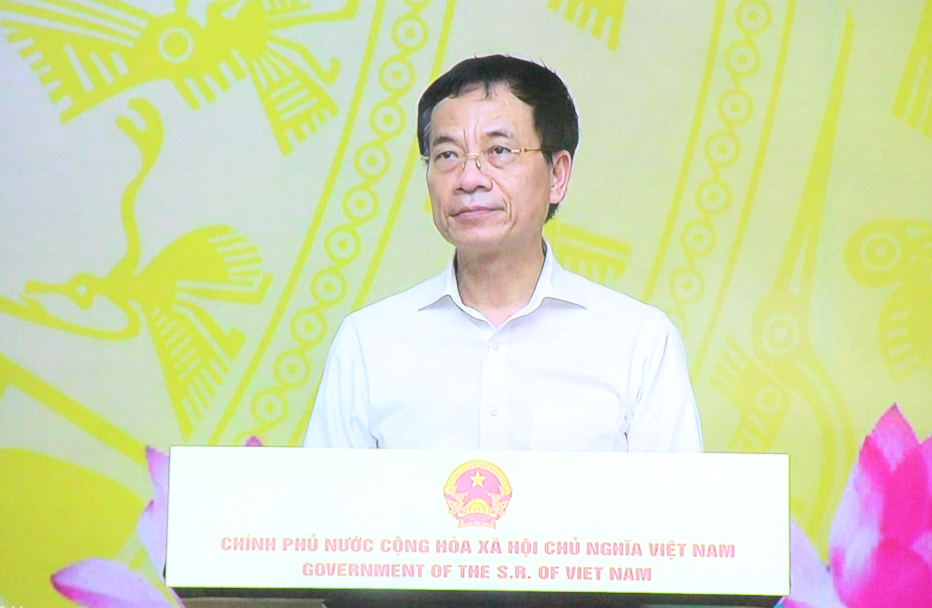 Bộ trưởng Bộ Thông tin và Truyền thông Nguyễn Mạnh Hùng phát biểu khai mạc buổi Lễ (Ảnh chụp qua màn hình)