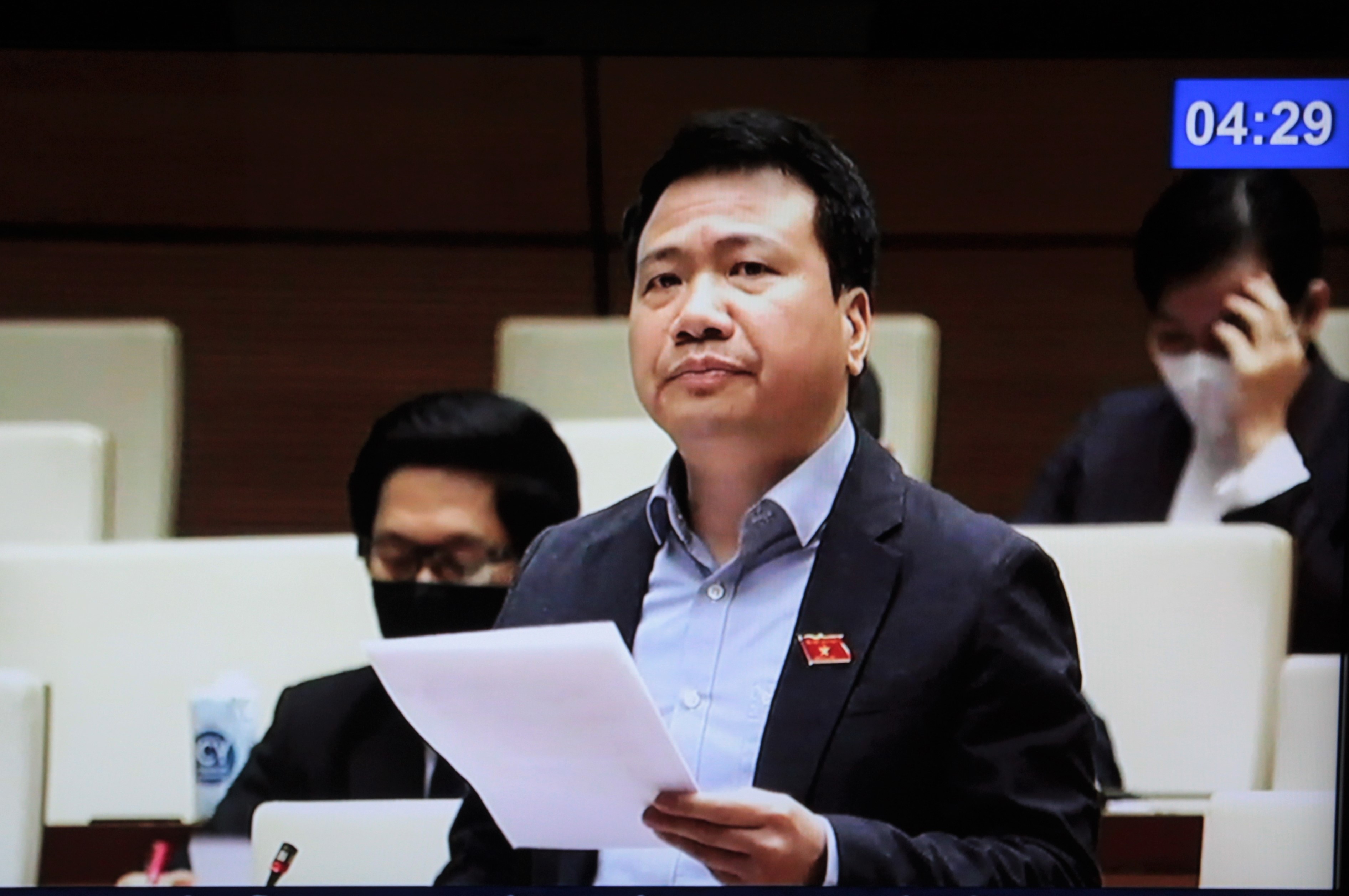 Đại biểu Ngô Trung Thành (Đoàn ĐBQH tỉnh Đắk Lắk) phát biểu tại Phiên làm việc (Ảnh chụp qua màn hình)