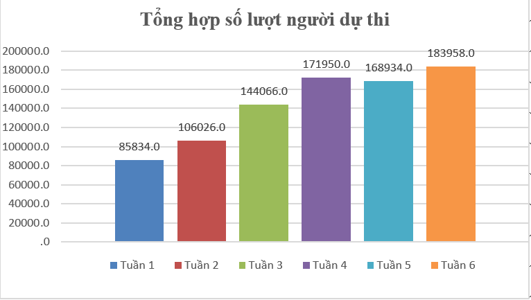 Biểu đồ tổng hợp số lượt người dự thi trắc nghiệm trong 6 tuần thi.