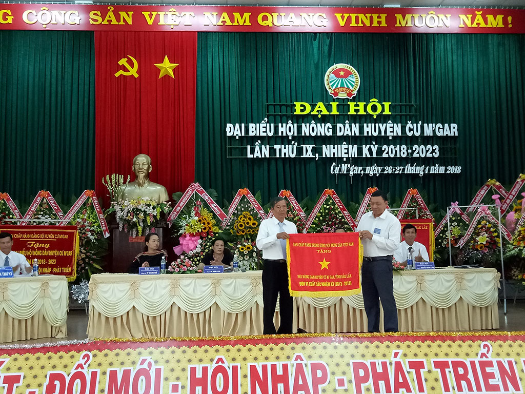 Nhân dịp này, thừa ủy quyền của TW Hội Nông dân Việt Nam, Hội Nông dân tỉnh Đắk Lắk đã tặng Cờ thi đua của Hội Nông dân Việt Nam cho Hội Nông dân huyện Cư M'gar- đơn vị xuất sắc nhiệm kỳ 2013-2018; tặng Bằng khen của Ban chấp hành Hội Nông dân Việt Nam cho ông Trần Văn Cường – Chủ tịch Hội Nông dân huyện Cư M'gar khóa VIII nhiệm kỳ 2012-2017. UBND huyện Cư M'gar cũng đã biểu dương khen thưởng cho 09 tập thể và 12 cá nhân đã có thành tích xuất sắc trong công tác Hội và phong trào nông dân trên địa bàn huyện giai đoạn 2012-2017 ./.
