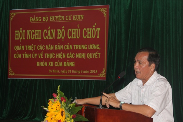 Ngày 24/4/2018, Đảng bộ huyện Cư Kuin đã tổ chức Hội nghị cán bộ chủ chốt toàn huyện quán triệt các văn bản của Trung ương, của Tỉnh ủy về thực hiện các Nghị quyết Khóa XII của Đảng. Dự Hội nghị có trên 150 đồng chí là Thường trực Huyện ủy, Ban Thường vụ Huyện ủy, Thường trực Hội đồng nhân dân, Uỷ ban nhân dân, Uỷ ban Mặt trận tổ quốc Việt Nam huyện; các Chi, Đảng bộ cơ sở; các cơ quan, đơn vị, ban ngành đoàn thể trên địa bàn huyện.