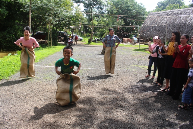 Hội viên cùng tham gia trò chơi bịt mắt đập lon bia…