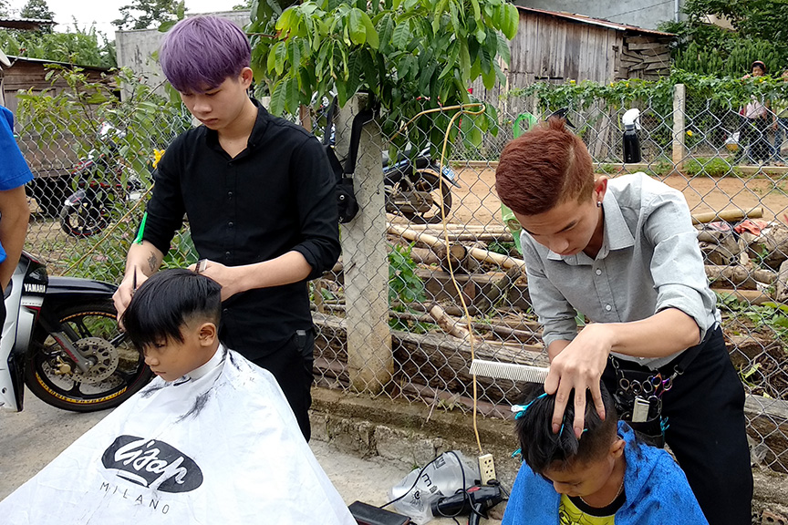 Các thành viên Hội tóc Buôn Ma Thuột cắt tóc miễn phí cho các em thiếu nhi