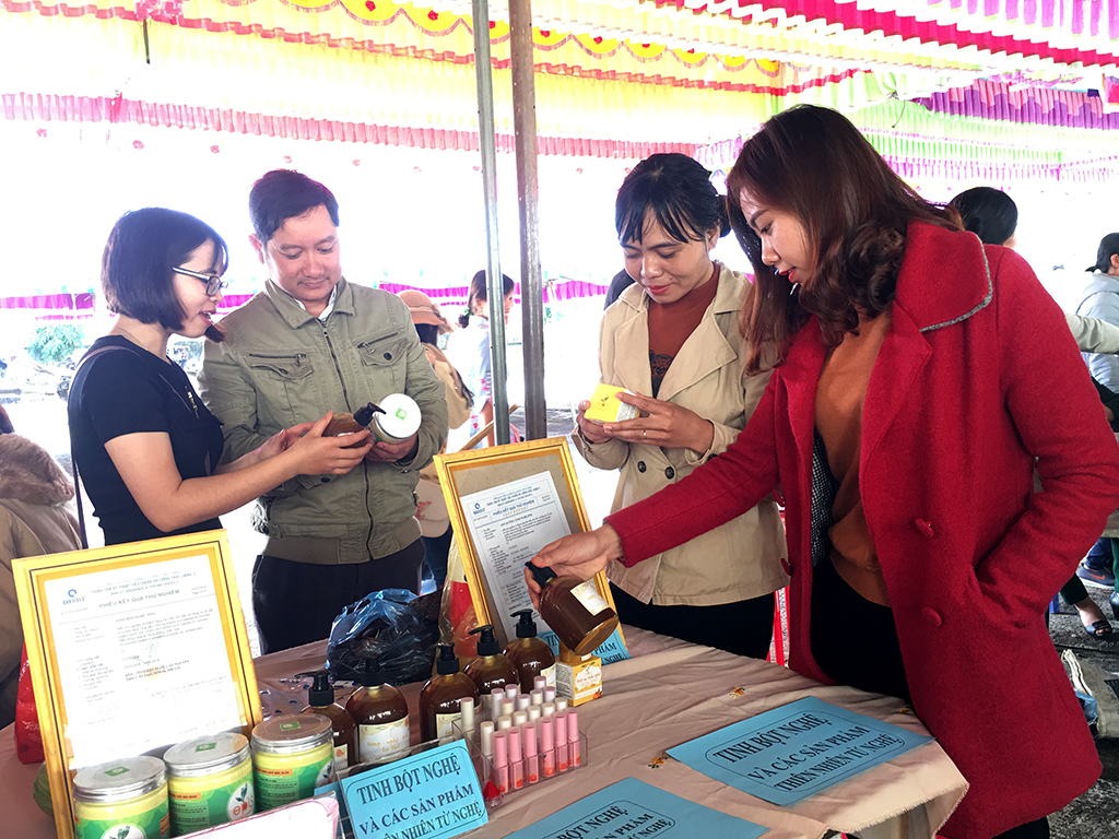 Kết thúc buổi lễ các đại biểu và hội viên phụ nữ đã tham quan và mua sắm tại các gian hàng sản phẩm của hội viên, phụ nữ với các loại thực phẩm an toàn phong phú, đa dạng như: Măng rừng khô Cư San, cam sành, cà đắng, gà, cá nước ngọt, trứng gà ta, trứng vịt, bánh nướng, tinh bột nghệ, các loại rau củ, quả...