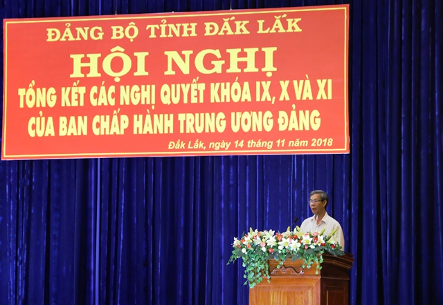 Sáng 14/11, Tỉnh ủy Đắk Lắk tổ chức Hội nghị tổng kết các nghị quyết khóa IX, X, XI của Ban Chấp hành Trung ương Đảng. Tham dự Hội nghị có các đồng chí Phạm Minh Tấn, Phó Bí thư Thường trực Tỉnh ủy; Trần Quốc Cường, UVBCHTW Đảng, Phó Bí thư Tỉnh ủy; các Ban của Tỉnh ủy, Huyện ủy, Thành ủy, các Sở, ban, ngành, hội, đoàn thể trên toàn tỉnh.