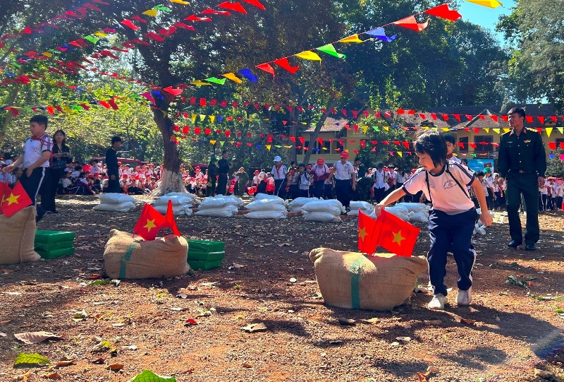 Đặc biệt các em học sinh được tham gia các hoạt động trải nghiệm “Một ngày làm chiến sĩ” đầy thú vị, bổ ích cùng các chú bộ đội đến từ Lữ đoàn Đặc công 198 như: Gấp chăn nội vụ; Điều lệnh đội ngũ, tham gia trò chơi “Đi không dấu” và “Cơm nắm nuôi quân”.