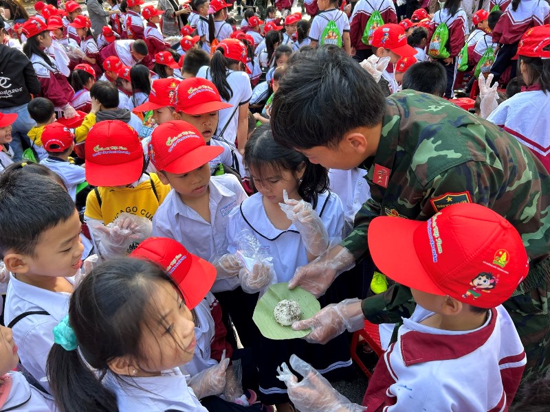 Tham gia các hoạt động trải nghiệm “Cơm nắm nuôi quân”.