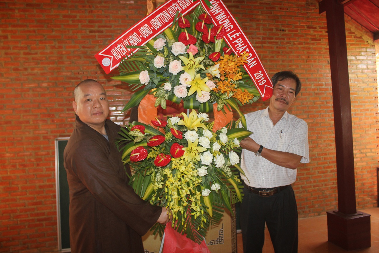 Nhân lễ Đại lễ Phật đản năm 2019 - Phật lịch 2563, sáng 17/5, Huyện ủy, HĐND, UBND, Ủy ban MTTQ Việt Nam huyện Buôn Đôn đã tổ chức 2 đoàn lãnh đạo thăm, tặng quà cho các cơ sở Phật giáo trên địa bàn huyện.