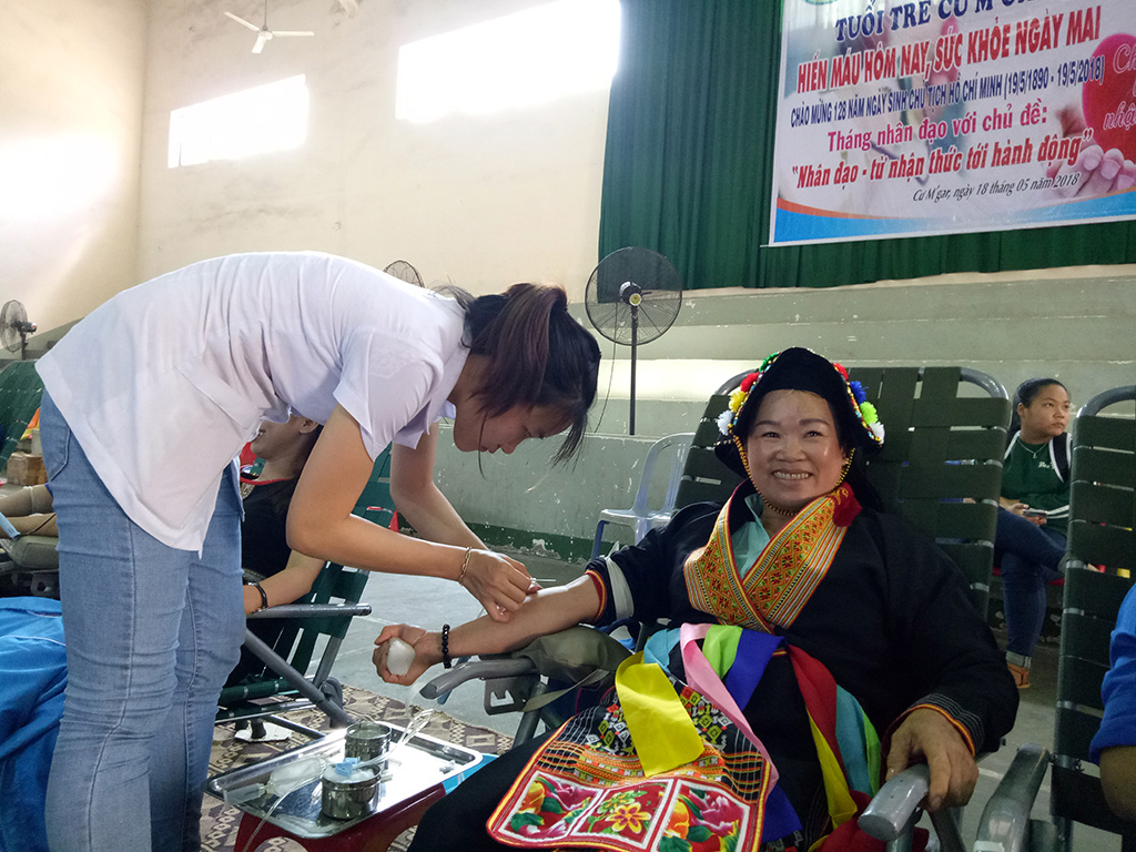 Một người dân ở xã Cư Suê tham gia hiến máu nhân đạo