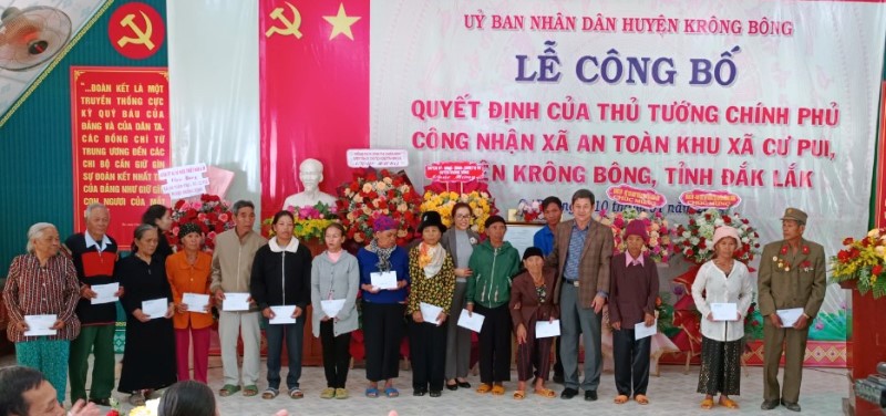 Sáng 10/1, UBND huyện Krông Bông đã tổ chức Lễ công bố Quyết định của Thủ tướng chính phủ công nhận “Xã An toàn khu” cho xã Cư Pui. Tham dự buổi lễ có đồng chí Huỳnh Thị Chiến Hòa- Chủ tịch HĐND tỉnh; đồng chí Bạch Văn Mạnh –Giám đốc Sở Nội vụ, lãnh đạo UBND huyện Krông Bông, Sở, ngành.
