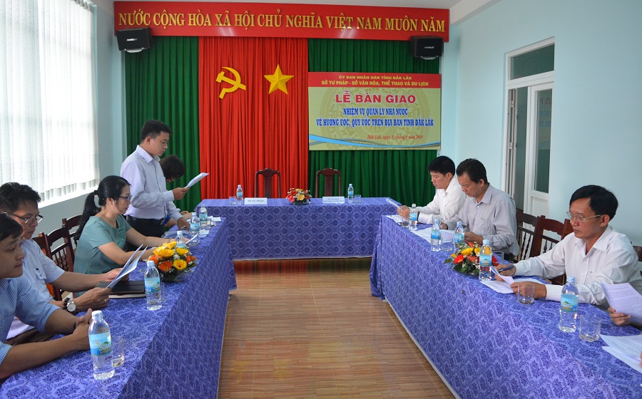 Tại buổi Lễ bàn giao, hai Sở đã cùng nhau đánh giá lại công tác quản lý nhà nước về hương ước, quy ước trên địa bàn thời gian qua; những khó khăn trong công tác này; sự phối hợp giữa các Sở, ngành, địa phương trong công tác kiểm tra, rà soát việc thực hiện hương ước, quy ước. Tính đến thời điểm hiện nay, toàn tỉnh có 2.388 bản hương ước trên tổng số 2.479 thôn, buôn, tổ dân phố, chiếm tỷ lệ 96,3%, còn lại 91 thôn, buôn, tổ dân phố thuộc 2 huyện Ea Súp, Ea H’leo đang trong quá trình xây dựng. Các bản hương ước, quy ước sau khi được phê duyệt đều được phổ biến đến các hộ gia đình, cá nhân ở thôn, buôn, tổ dân phố bằng nhiều hình thức như niêm yết tại Nhà văn hóa, điểm sinh hoạt cộng đồng; sao gửi hương ước, quy ước đến từng hộ gia đình, cá nhân.
