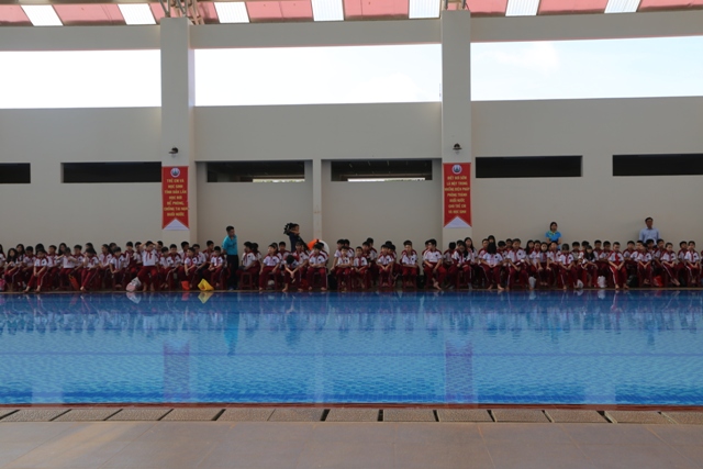 Học sinh tham gia buổi lễ phát động và thực hành bơi