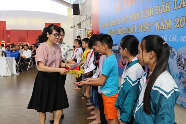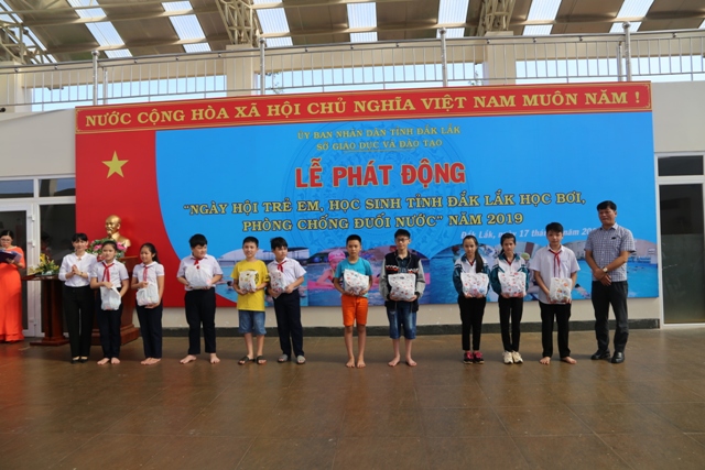 Tại Lễ phát động các nhà tài trợ đã tặng 120 xuất quà là các dụng cụ phục vụ công tác bơi lội và 21 xuất học bổng bơi, phòng chống đuối nước cho học sinh nghèo vượt khó trường THCS Nguyễn Du huyện Krông Năng; trường THCS Lương Thế Vinh TP. Buôn Ma Thuột.