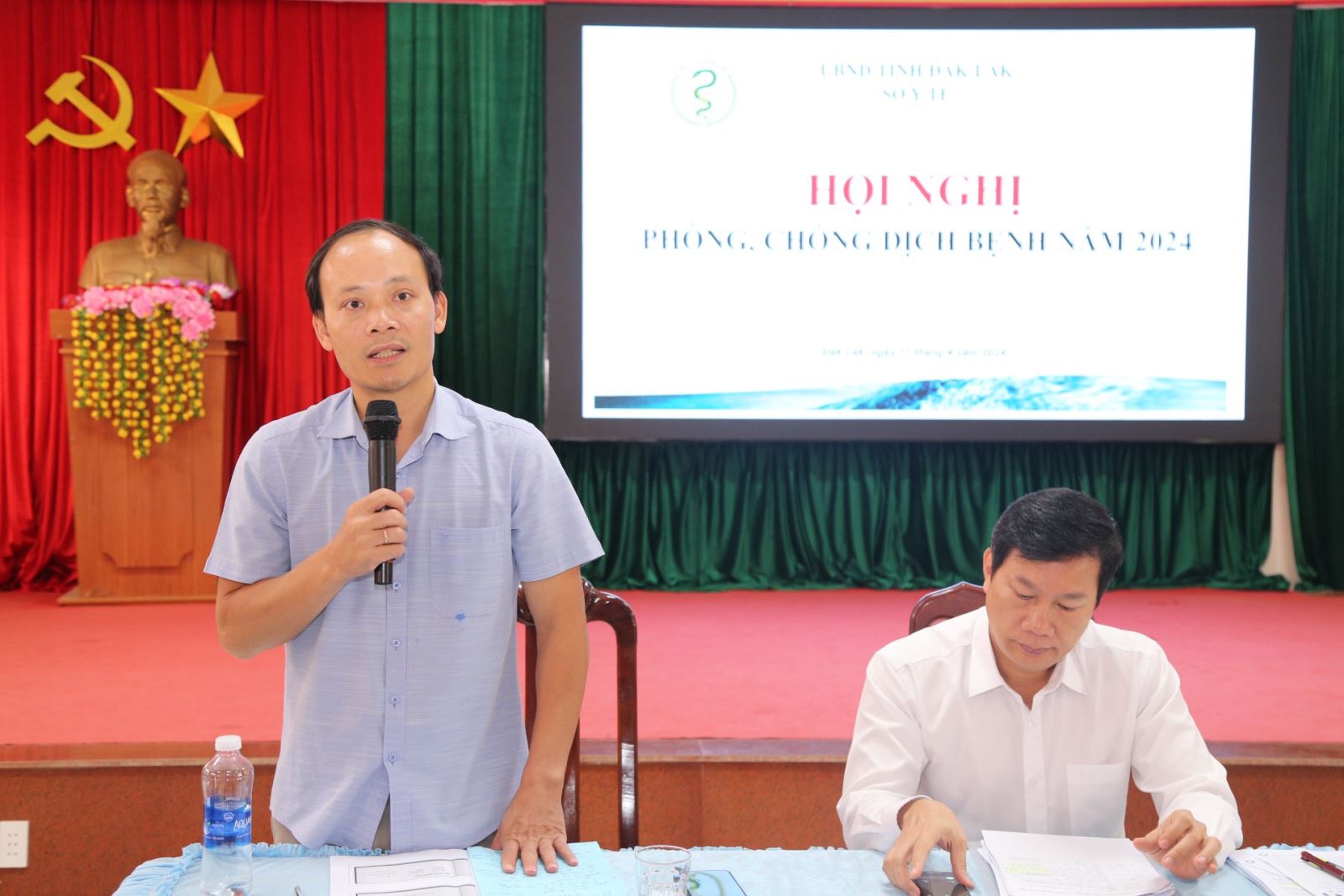 Sáng 17/4, Sở Y tế tổ chức Hội nghị phòng, chống dịch bệnh năm 2024. Bác sĩ chuyên khoa II Hoàng Nguyên Duy – Phó Giám đốc Sở Y tế và Tiến sĩ Lê Văn Tuấn – Phó Viện trưởng Viện vệ sinh dịch tễ Tây Nguyên đồng chủ trì Hội nghị.