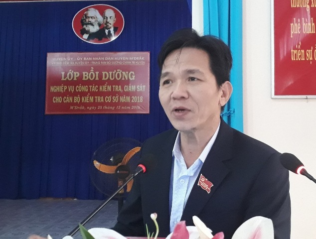 Ngày trong 2 ngày 25 và 26/12, Ủy ban Kiểm tra Huyện ủy M’Đrắk phối hợp Trung tâm bồi dưỡng chính trị huyện M’Đrắk mở lớp bồi dưỡng nghiệp vụ công tác kiểm tra, giám sát cho trên 90 đồng chí là Bí thư, Phó Bí thư, Chủ nhiệm, Phó Chủ nhiệm, Ủy viên Ủy ban Kiểm tra và cán bộ phụ trách công tác kiểm tra, giám sát của 41 tổ chức cơ sở đảng trực thuộc Huyện ủy M’Đrắk.