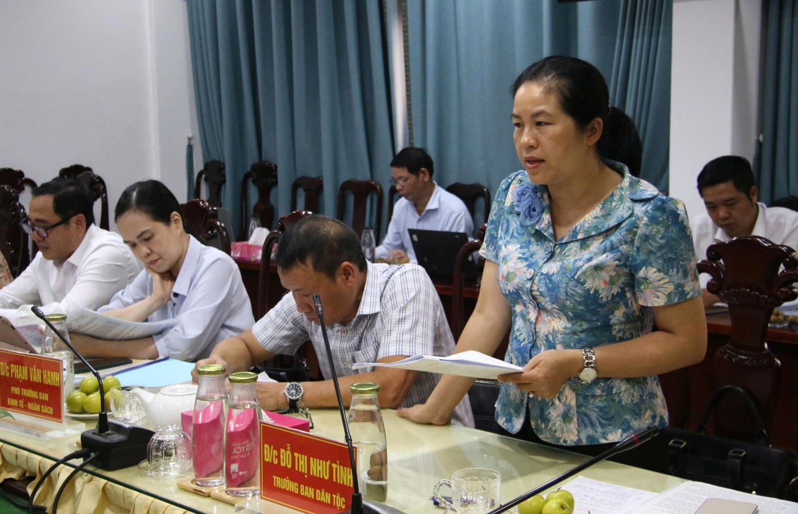 Trưởng Ban Dân tộc HĐND tỉnh Đỗ Thị Như Tình phát biểu tại buổi làm việc.