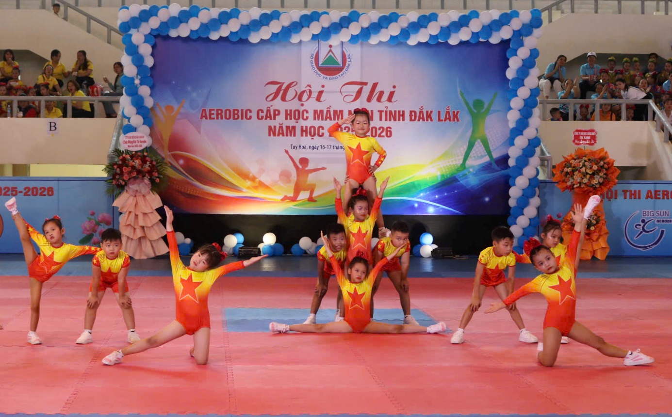 Sáng 17/4, tại Nhà Văn hóa Lao động tỉnh (phường Tuy Hòa), Sở Giáo dục và Đào tạo tỉnh Đắk Lắk tổ chức khai mạc Hội thi Aerobic cấp học mầm non năm học 2025–2026 khu vực phía Đông, tạo sân chơi bổ ích, lành mạnh cho trẻ em lứa tuổi mầm non trên địa bàn. Đây là đợt thi thứ hai trong khuôn khổ hội thi cấp tỉnh, sau khi khu vực phía Tây diễn ra tại Buôn Ma Thuột.
