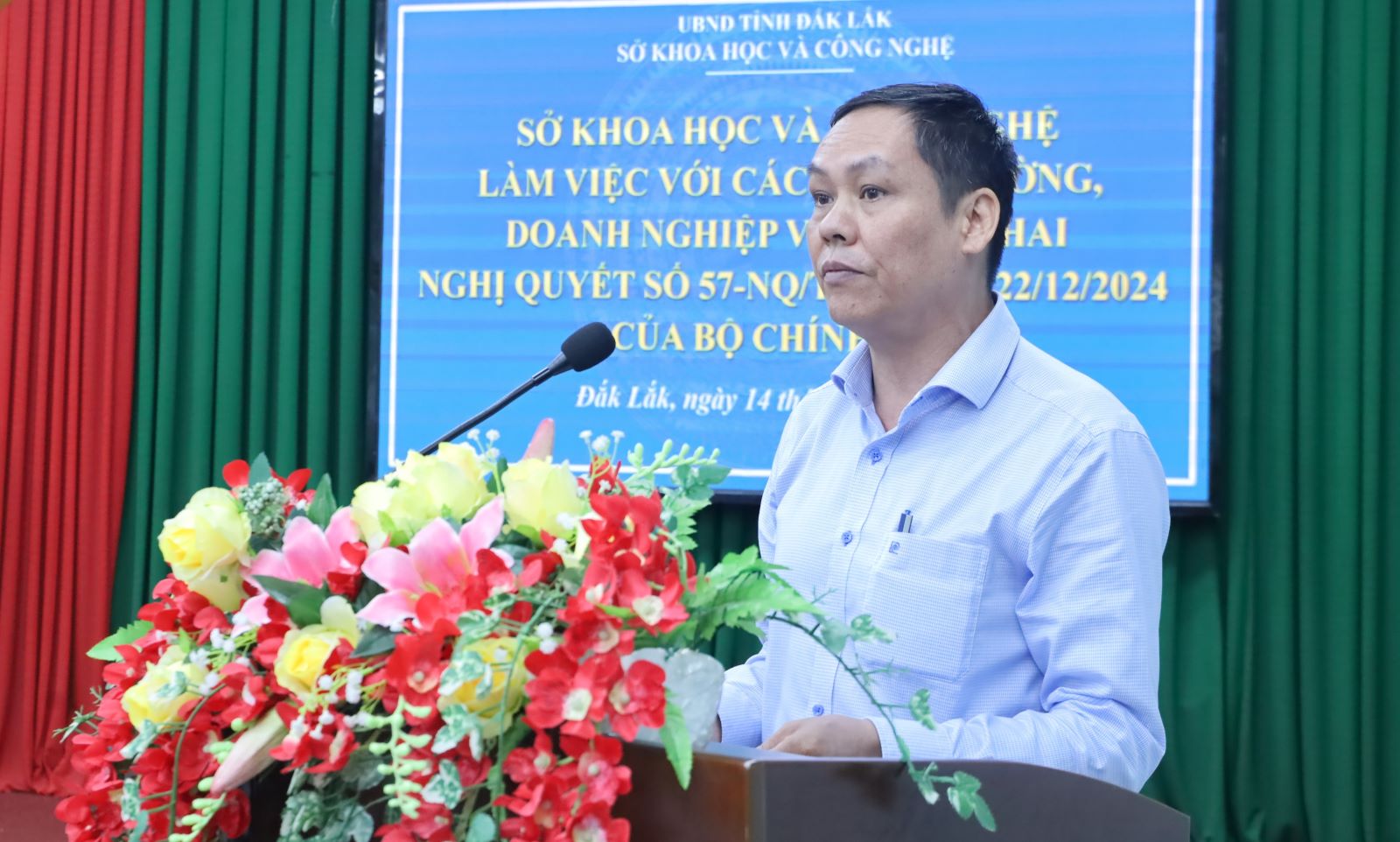Phát biểu tại buổi làm việc, Phó Giám đốc Sở Khoa học và Công nghệ Phạm Gia Việt nhấn mạnh, Nghị quyết số 57-NQ/TW là văn kiện mang tính chiến lược, thể hiện tầm nhìn và tư duy đột phá của Đảng trong việc đưa khoa học, công nghệ, đổi mới sáng tạo và chuyển đổi số trở thành động lực trung tâm cho phát triển nhanh và bền vững đất nước. Tại Nghị quyết Đại hội Đảng bộ tỉnh Đắk Lắk lần thứ I, nhiệm kỳ 2025–2030 và các nghị quyết, kế hoạch của Tỉnh ủy về phát triển khoa học, công nghệ, đổi mới sáng tạo và chuyển đổi số cũng đã xác định rõ đây là một trong những đột phá chiến lược của tỉnh trong giai đoạn mới.