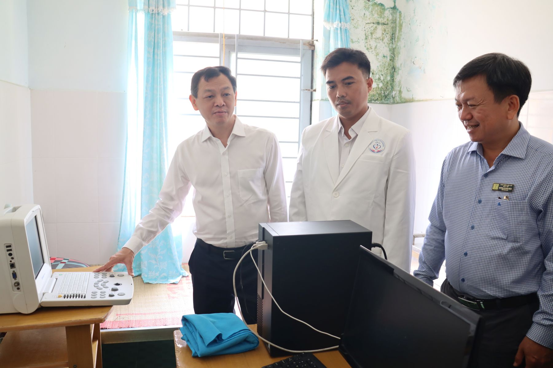 Thứ trưởng Bộ Y tế Nguyễn Tri Thức kiểm tra máy móc phục vụ khám chữa bệnh tại Trạm y tế xã Cư Prao.