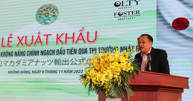 Speaking at the ceremony, Mr. Vu Van My - Chairman of the District People's Committee stated that the first official export of "Krong Nang Macadamia Nuts" to the Japanese market is the result of long-term efforts of the government and farmers of Krong Nang district.