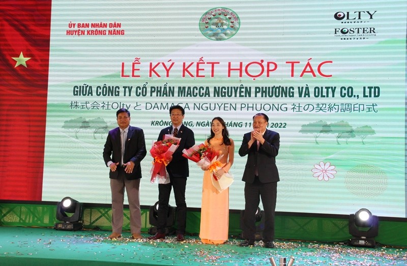 At the ceremony, representatives of businesses of both sides: DAMACA Nguyen Phuong Joint Stock Company and OLTY Company (Japan) signed a contract for exclusive distribution in the Japanese market for dried macadamia nut products of DAMACA Nguyen Phuong Company.