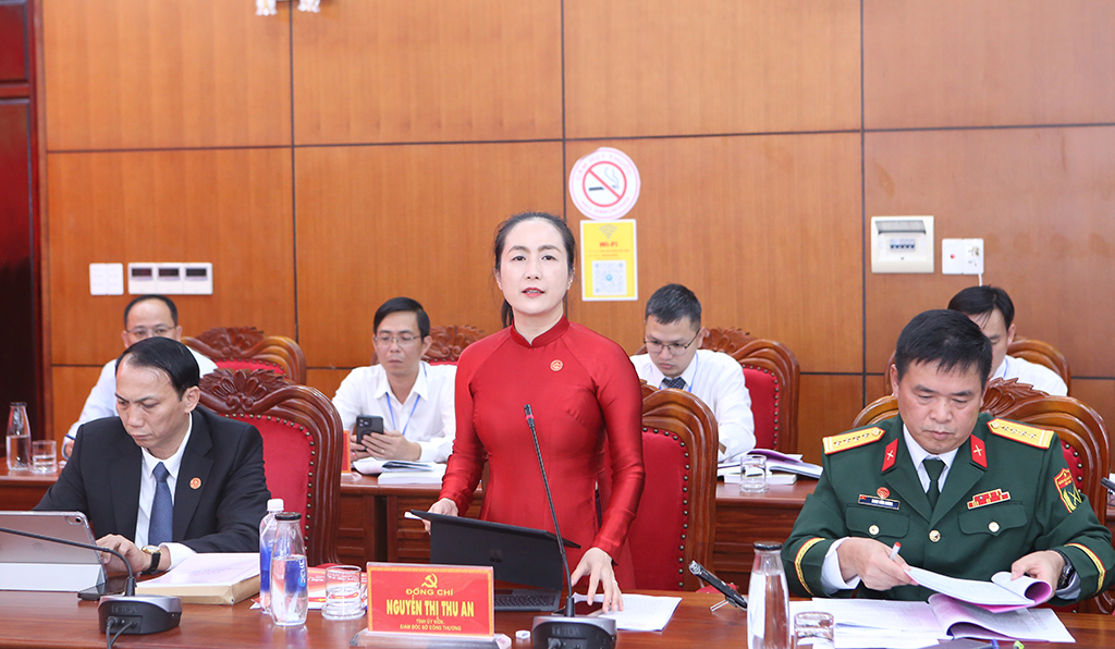 Giám đốc Sở Công thương Nguyễn Thị Thu An phát biểu thảo luận tại Tổ số 1.