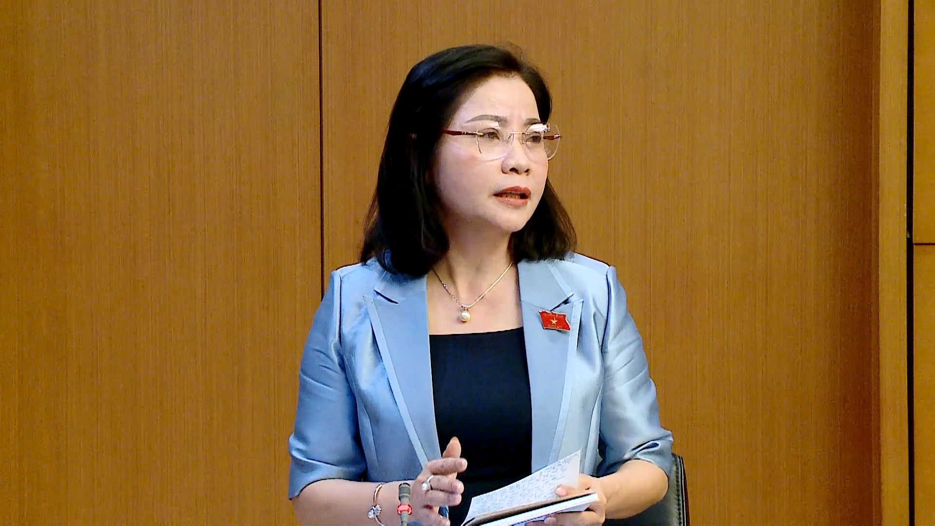 Đại biểu Nguyễn Thị Thu Nguyệt - Tỉnh ủy viên, Phó Trưởng đoàn chuyên trách Đoàn đại biểu Quốc hội tỉnh Đắk Lắk phát biểu tại phiên thảo luận (Ảnh: Đoàn đại biểu Quốc hội tỉnh cung cấp).