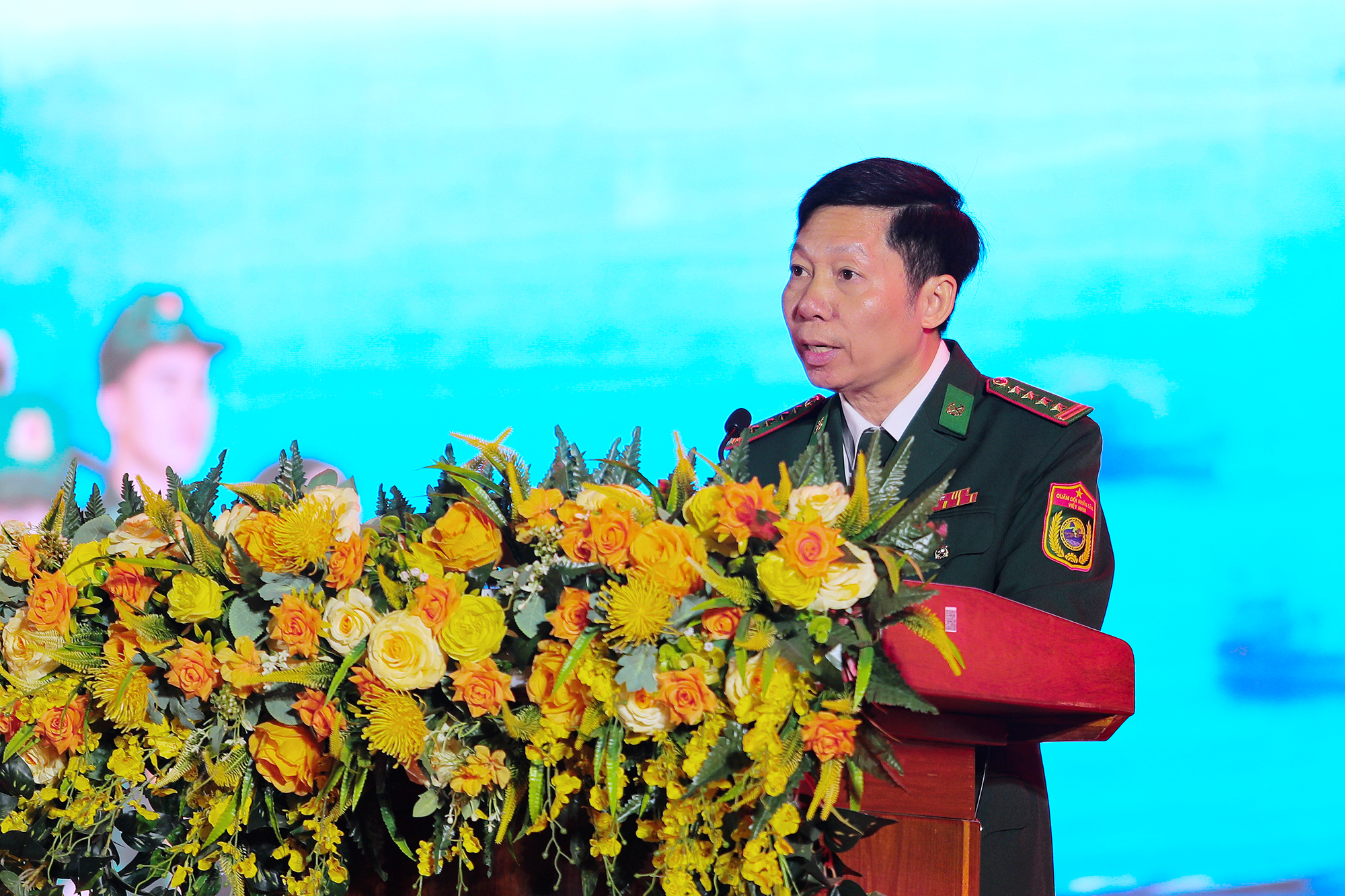 Đại tá Đỗ Quang Thấm - Phó Chính ủy Bộ Chỉ huy Quân sự tỉnh, Chính ủy Ban Chỉ huy Bộ đội Biên phòng tỉnh phát biểu khai mạc chương trình.