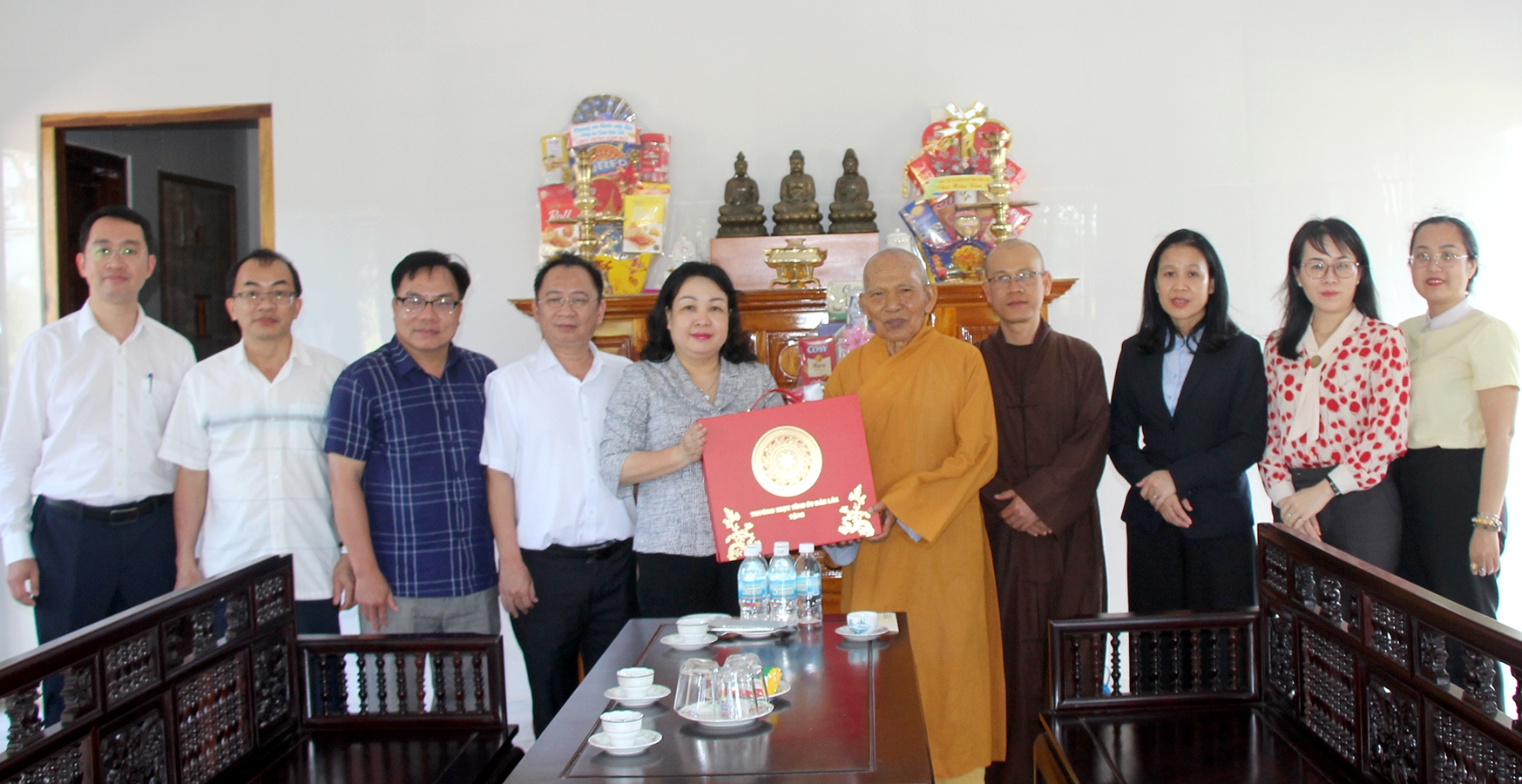 Chiều 8/2, Đoàn công tác của Tỉnh ủy, HĐND, UBND, Ủy ban MTTQ Việt Nam và Đoàn ĐBQH tỉnh Đắk Lắk do đồng chí Cao Thị Hòa An - Ủy viên Trung ương Đảng, Phó Bí thư Thường trực Tỉnh ủy, Chủ tịch HĐND tỉnh làm Trưởng đoàn đã đến thăm, tặng quà các gia đình chính sách và thăm, chúc Tết các chức sắc tôn giáo tại một số cơ sở phật giáo trên địa bàn tỉnh.