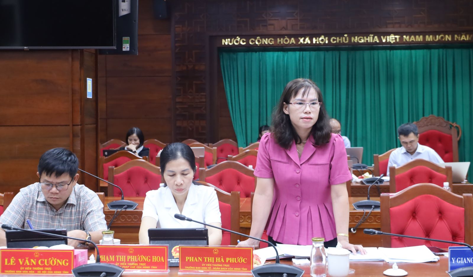 Trưởng Ban Kinh tế - Ngân sách HĐND tỉnh Phan Thị Hà Phước phát biểu thảo luận tại phiên họp.