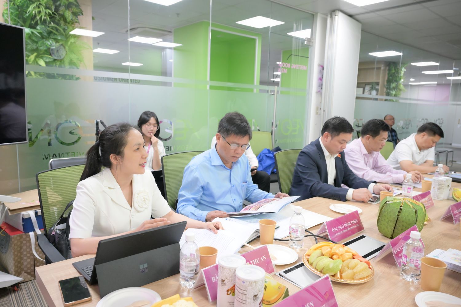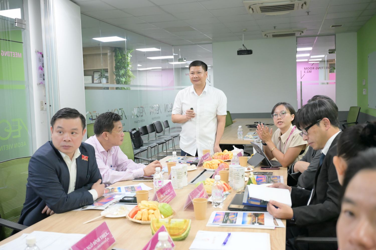 Đón tiếp đoàn công tác có ông Tazeku – Tổng Giám đốc Công ty TNHH AEON Việt Nam, ông Hagino Tatsuya – Giám đốc cấp cao Khối phát triển dự án & xây dựng AEON Việt Nam, ông Shimizu Hiroto – Giám đốc phát triển dự án khu vực phía Nam và Miền trung, bà Nguyễn Thị Ngọc Huệ - Giám đốc cấp cao khối Chiến lược nguồn nhân lực, thương hiệu …